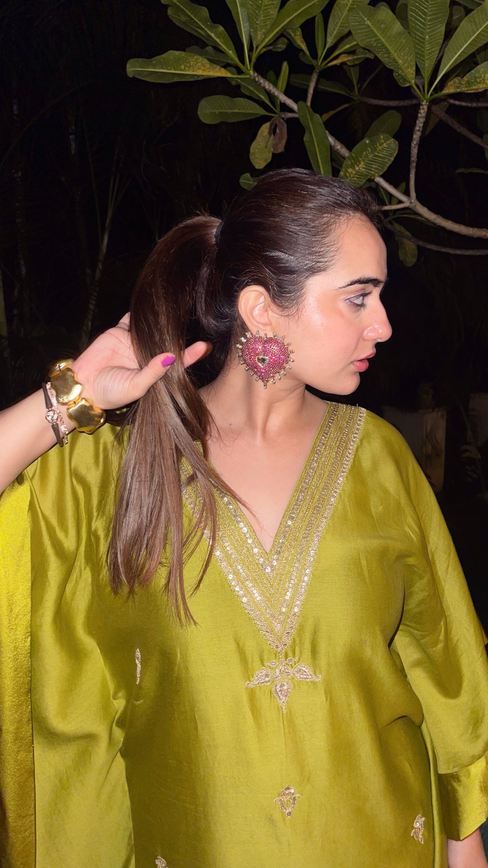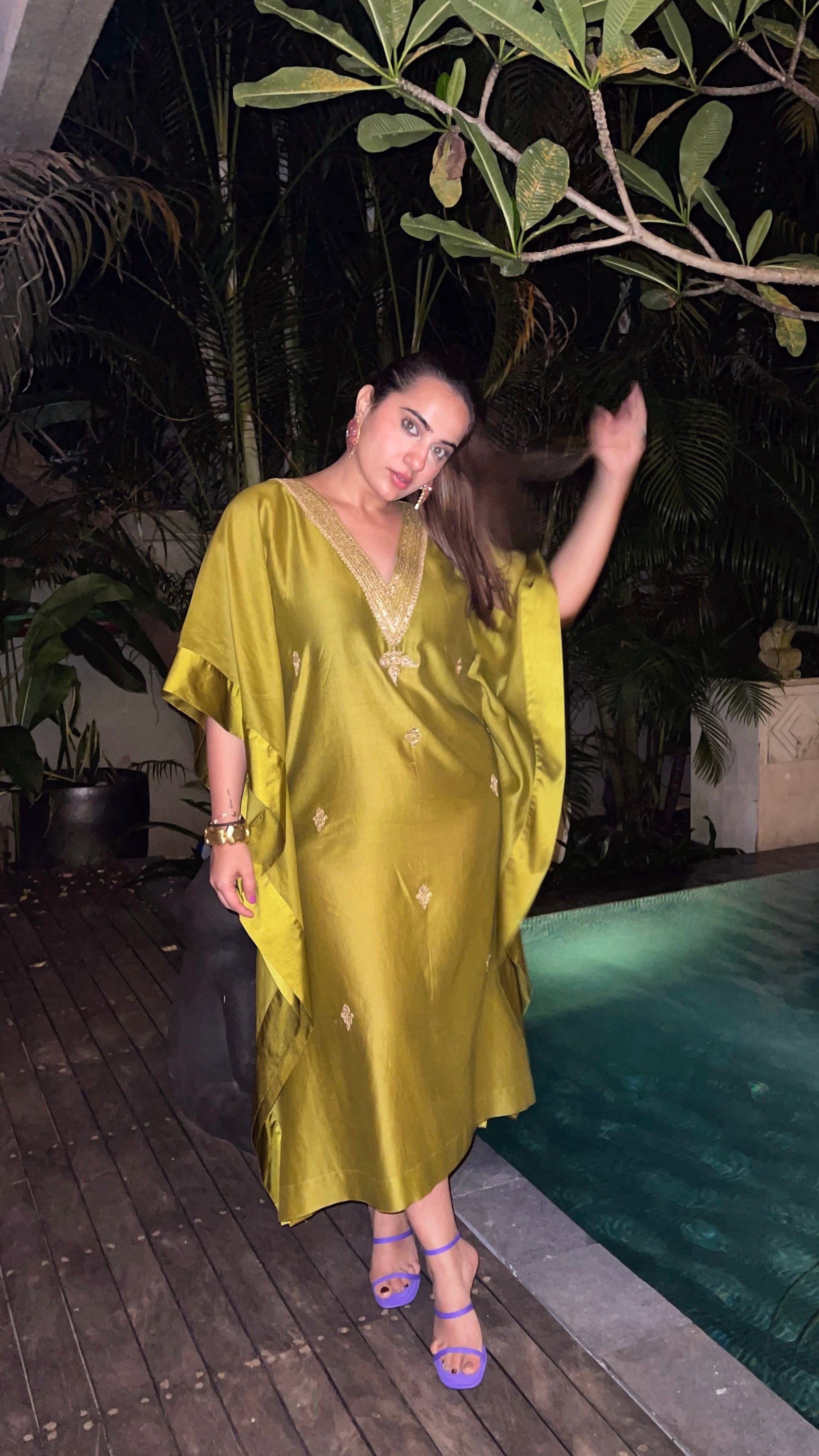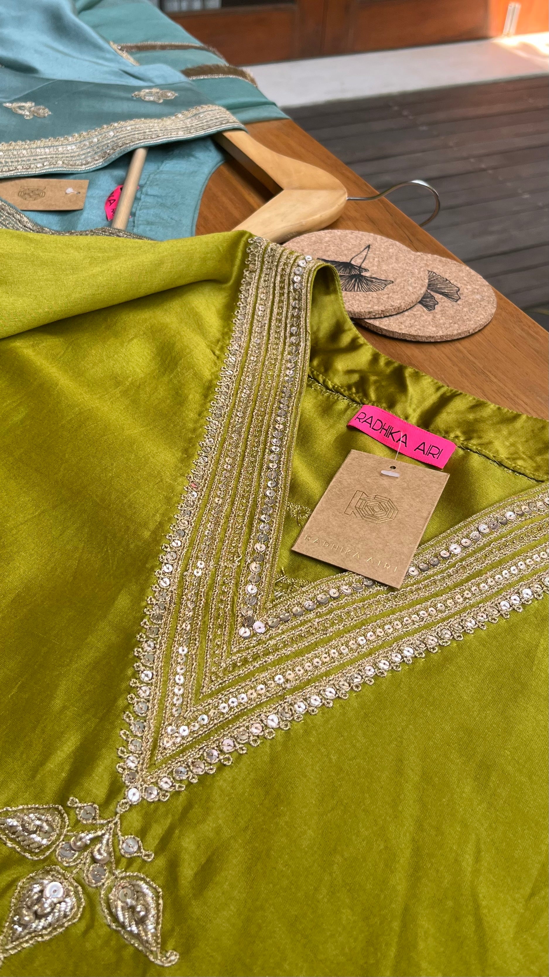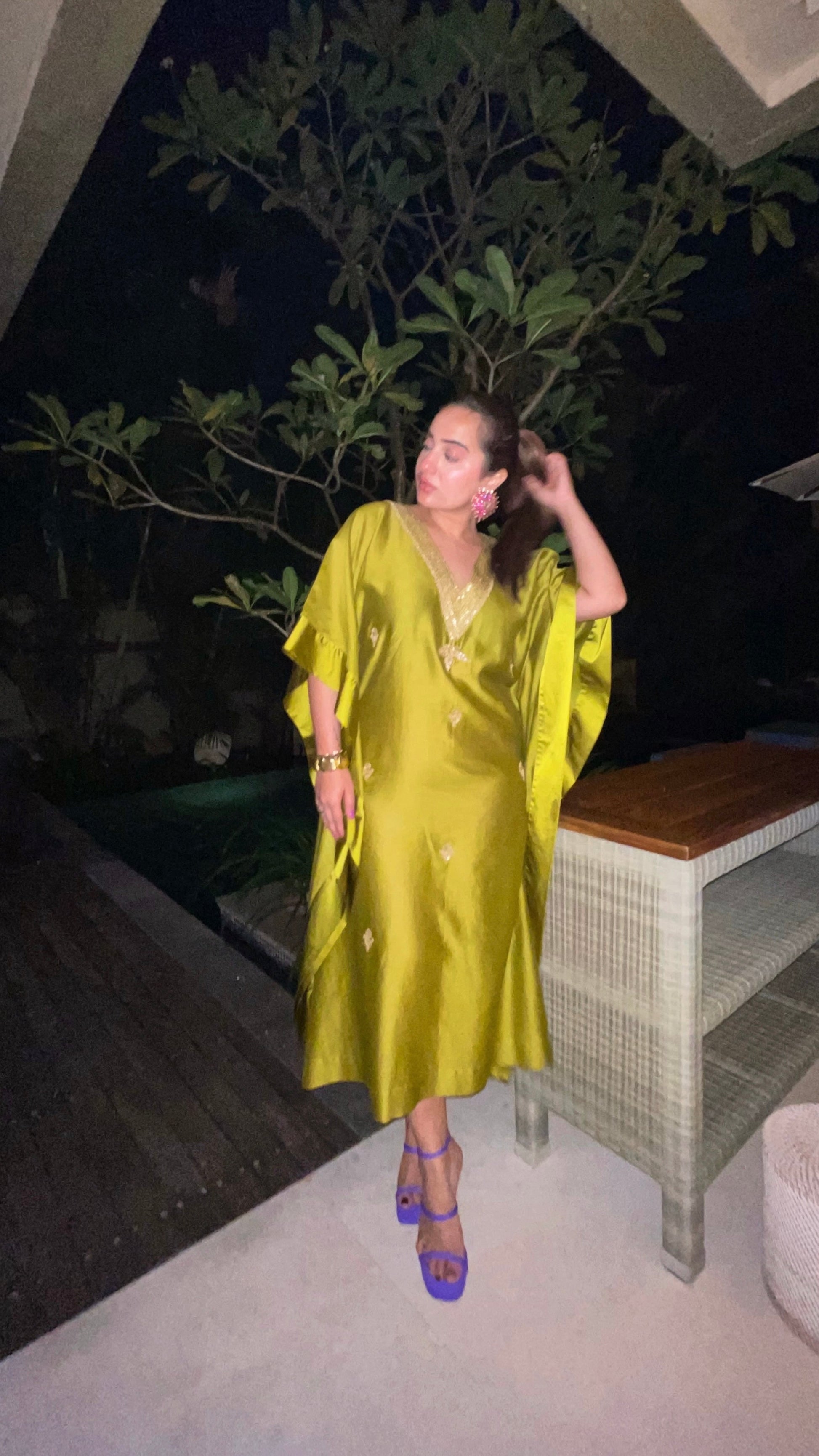 Silk Chanderi and Satin Kaftan with hand Dori, sequins and Naqshi embroidery