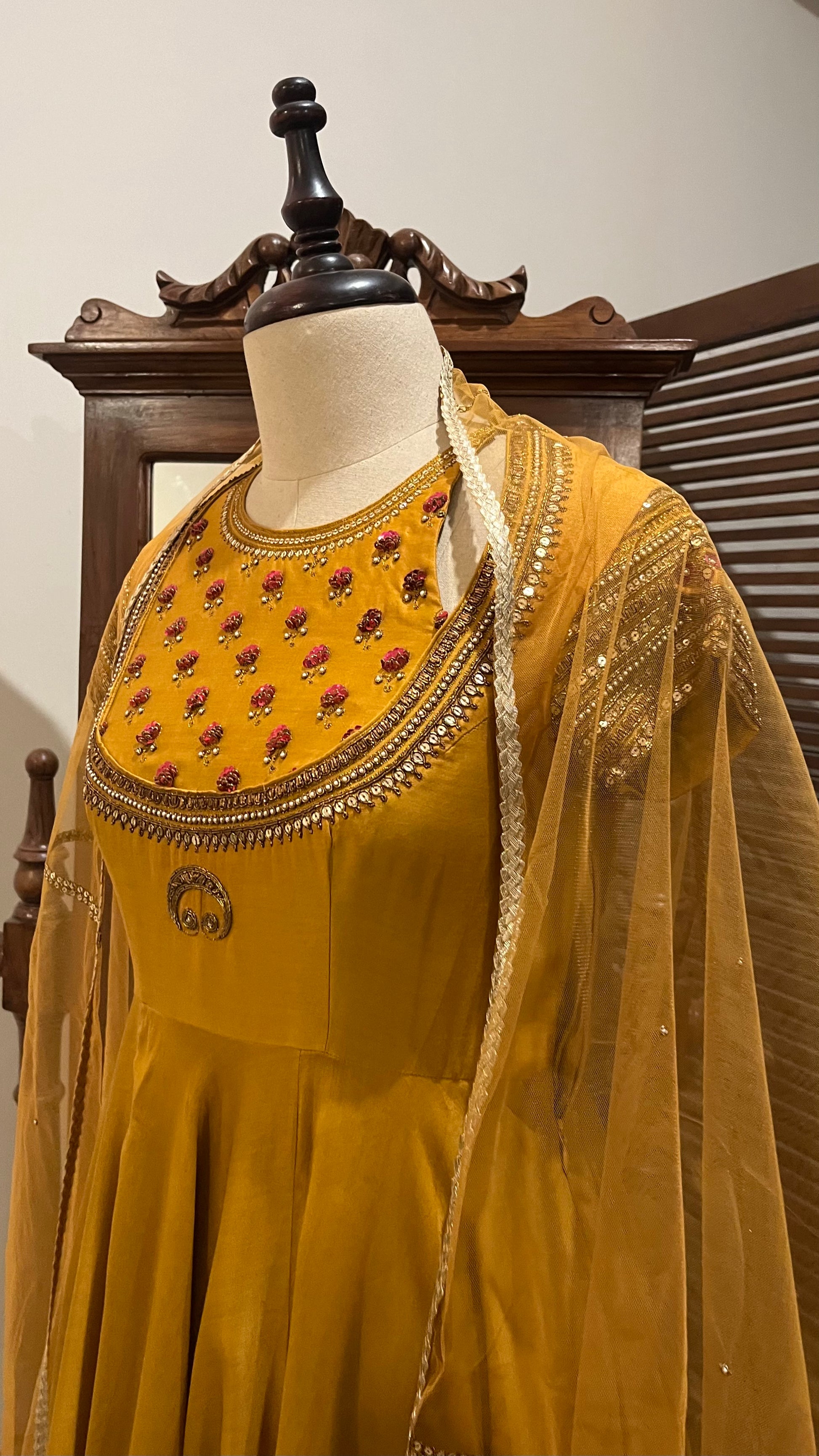 MUSTARD ANARKALI DUPATTA AND CHURIDAAR SET