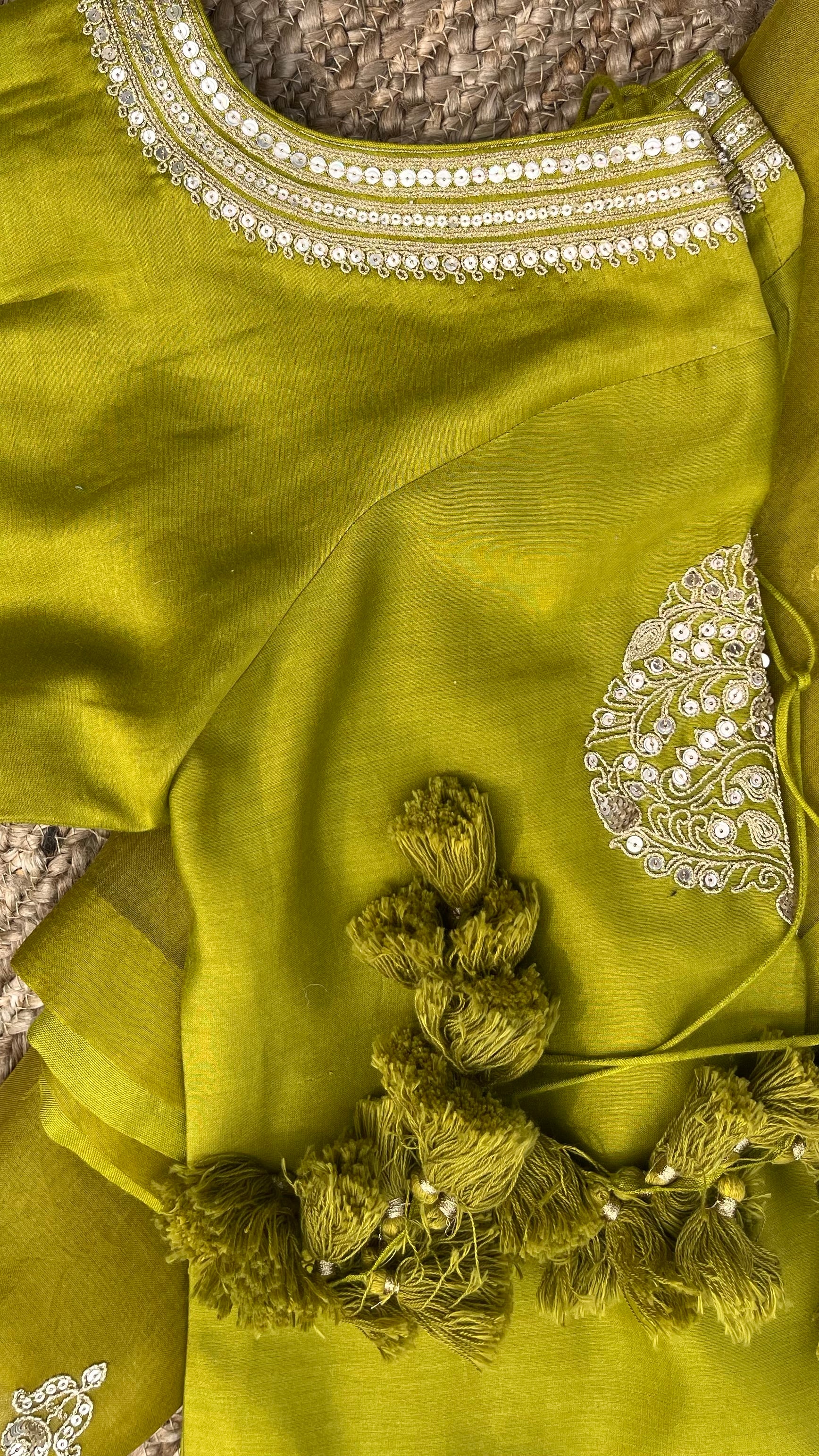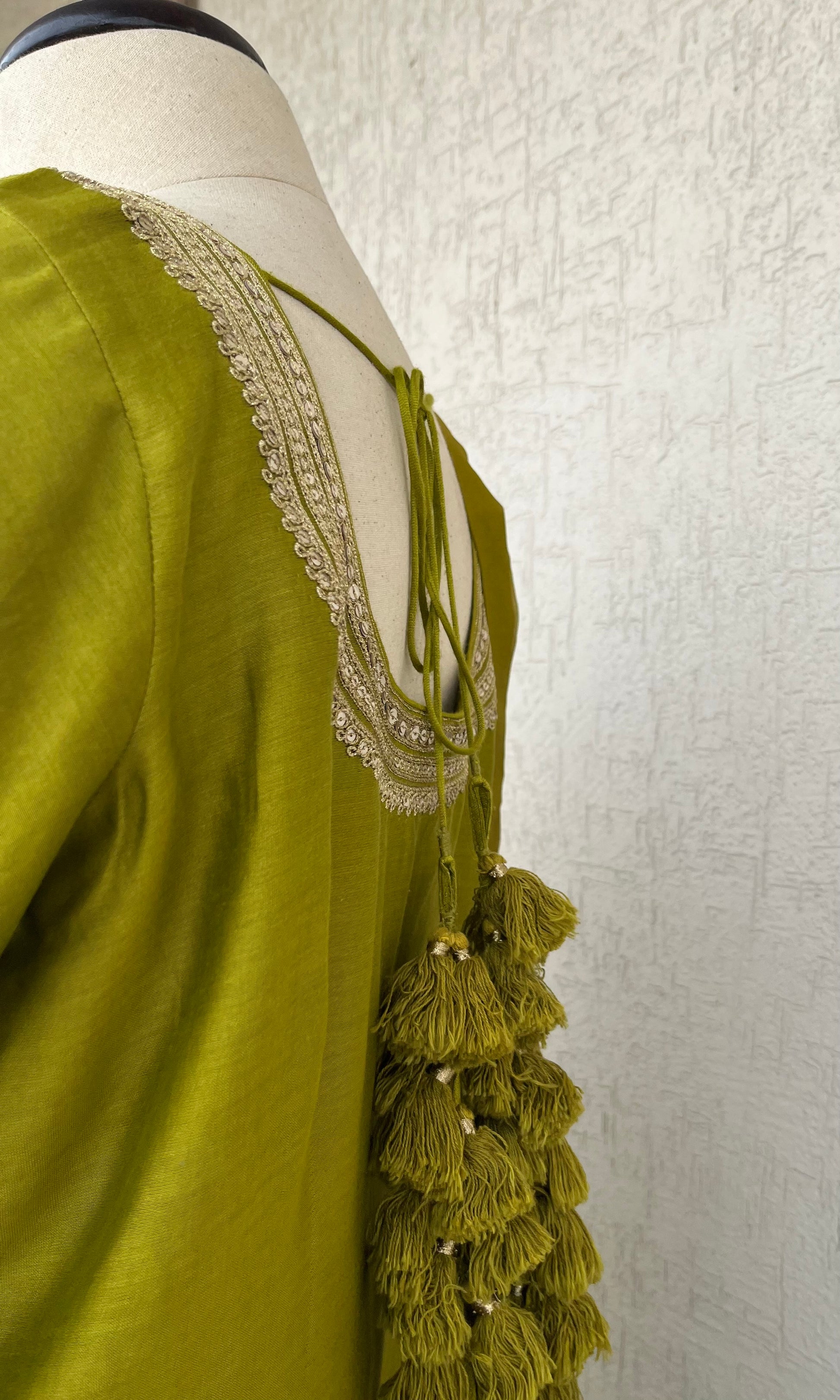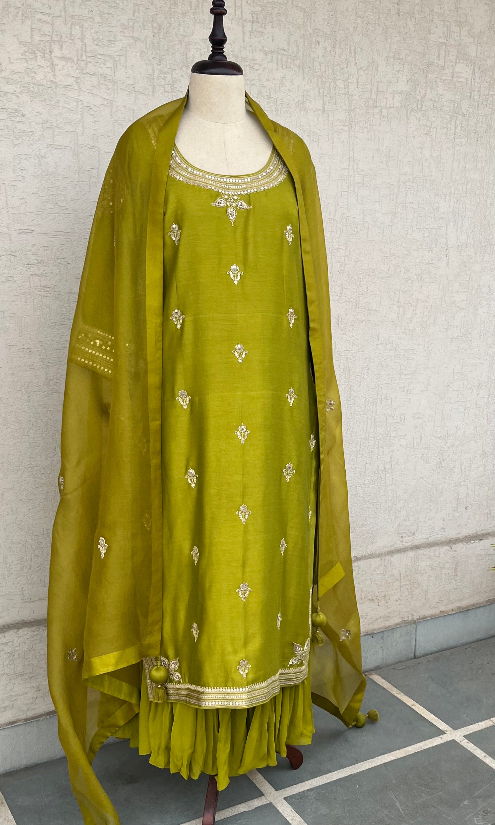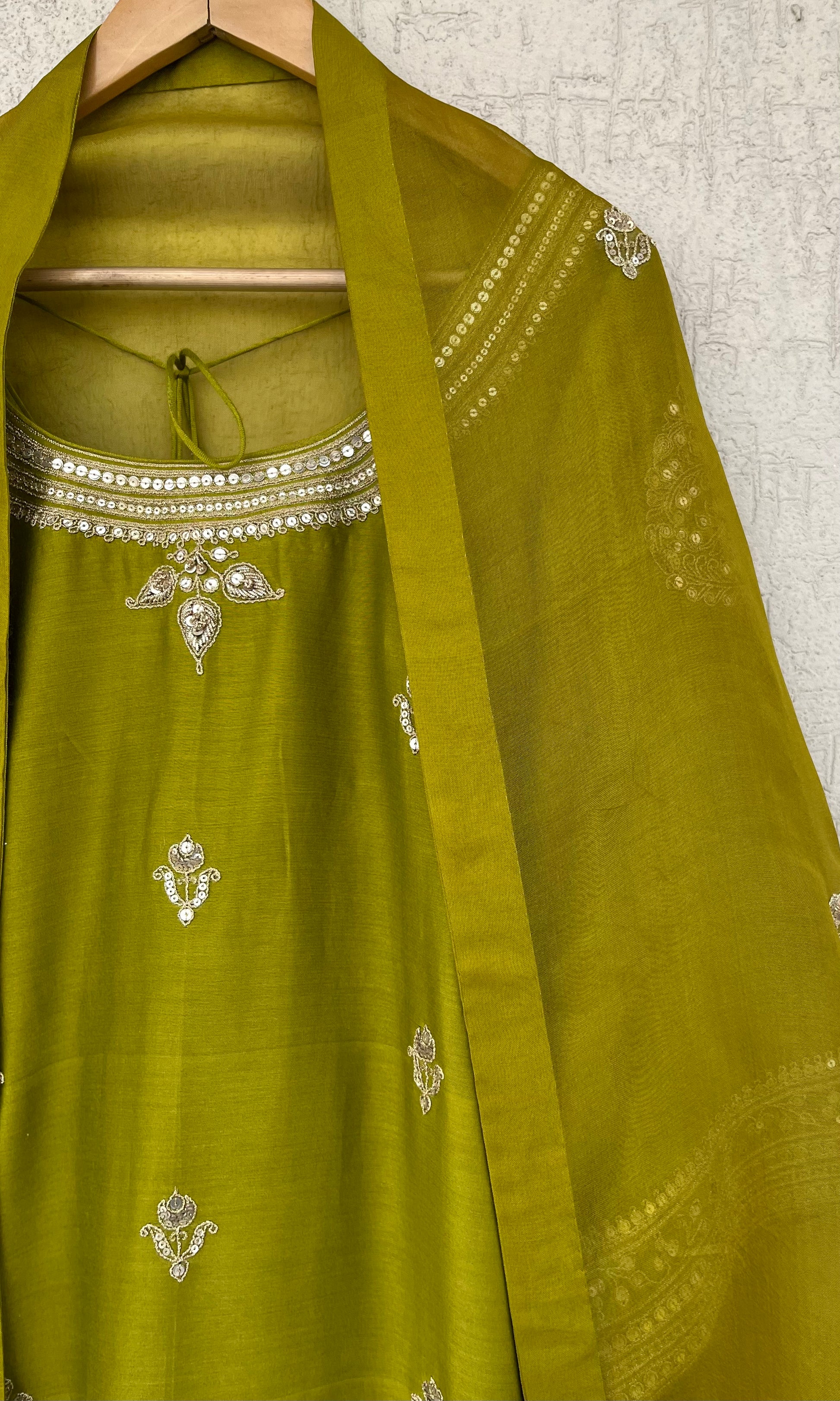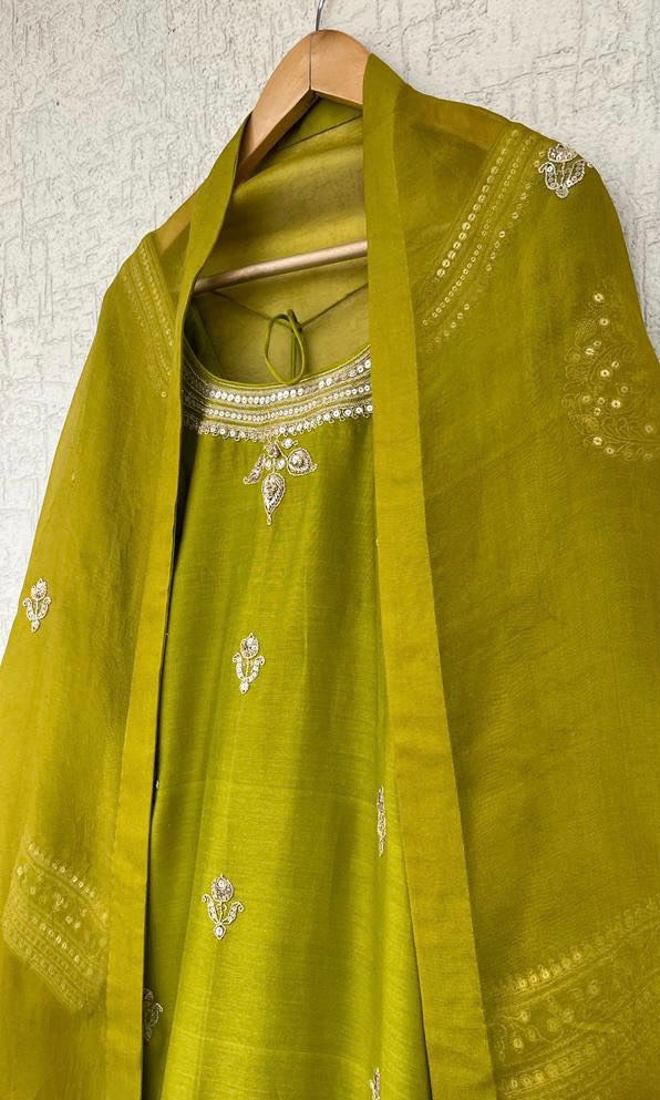 Straight Long Silk Chanderi Kurta and Organza Dupatta with Hand Dori and Sequins Embroidery